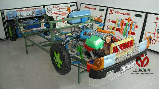 桑塔纳模型选用用进口有机玻璃及工程塑料、铸铝汽车部件等,用模具一次成型铸造。内中部件均以工程硬质塑料加工,利用螺丝固定在金属高温烘漆而成的车架上,使模型在牢固度上有很大的提高。桑塔纳发动机总成以电力驱动,油门设有调速装置,能演示发动机转速的高低。离合器分离明显,操纵灵活,离合器外壳整体压模而成,变速器的各档齿轮用各种颜色表示,操纵自如,其中主减速,差速,转动灵活,车轮对开压铸,刻有防滑槽纹,看上去美观大方。转向装置以及电瓶、油箱、水箱,做工精细、富有光泽。制动管路分布清楚,一目了然。电路采用对插件前后分布,前灯架和风扇用透明有机玻璃压模成整体,看上去美观逼真,仪表板及后灯架逼真坚固。