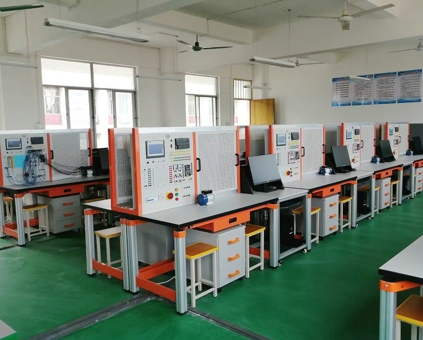 PLC实验室可同时满足40人的PLC控制类课程的实验教学任务,实训台使学生掌握可编程控制器(PLC)和基本指令、PLC控制系统、现场总线网络等基本结构与工作原理,以及分析编程,设计选型、性能测试等。培养学生在PLC控制系统等方向的理论联系实际意识和基本实验技能,提高学生实际动手和设计能力。