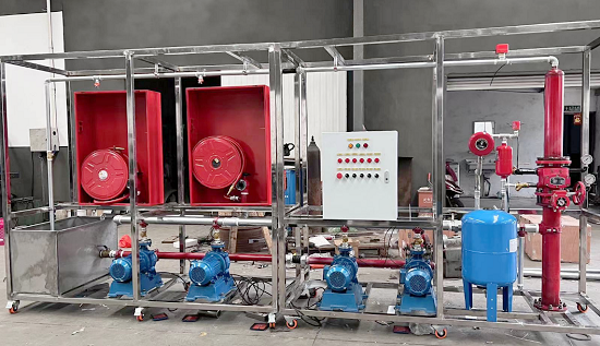 实验目的 1、消火栓系列稳压装置主要由小进口气压罐/国内隔膜式气压罐、消火栓水泵机组、全自动喷淋水泵机组、管阀附件及控制柜等配置,其中大功率消防给水设备由消火栓水泵机组构成一套消防栓喷淋系统 2、能进行消火栓系统管道及设备的安装综合实训,并能进行消火栓系统运行工程的演示。 |